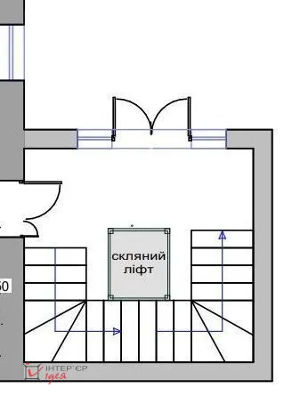 Так як це приміщення суміжне з залом ресторану, оформлення їх стін схоже: декоративна штукатурка світло-сірого кольору та дерев'яні рейки. Сходинки зробили скляними з вбудованою світлодіодною підсвіткою.