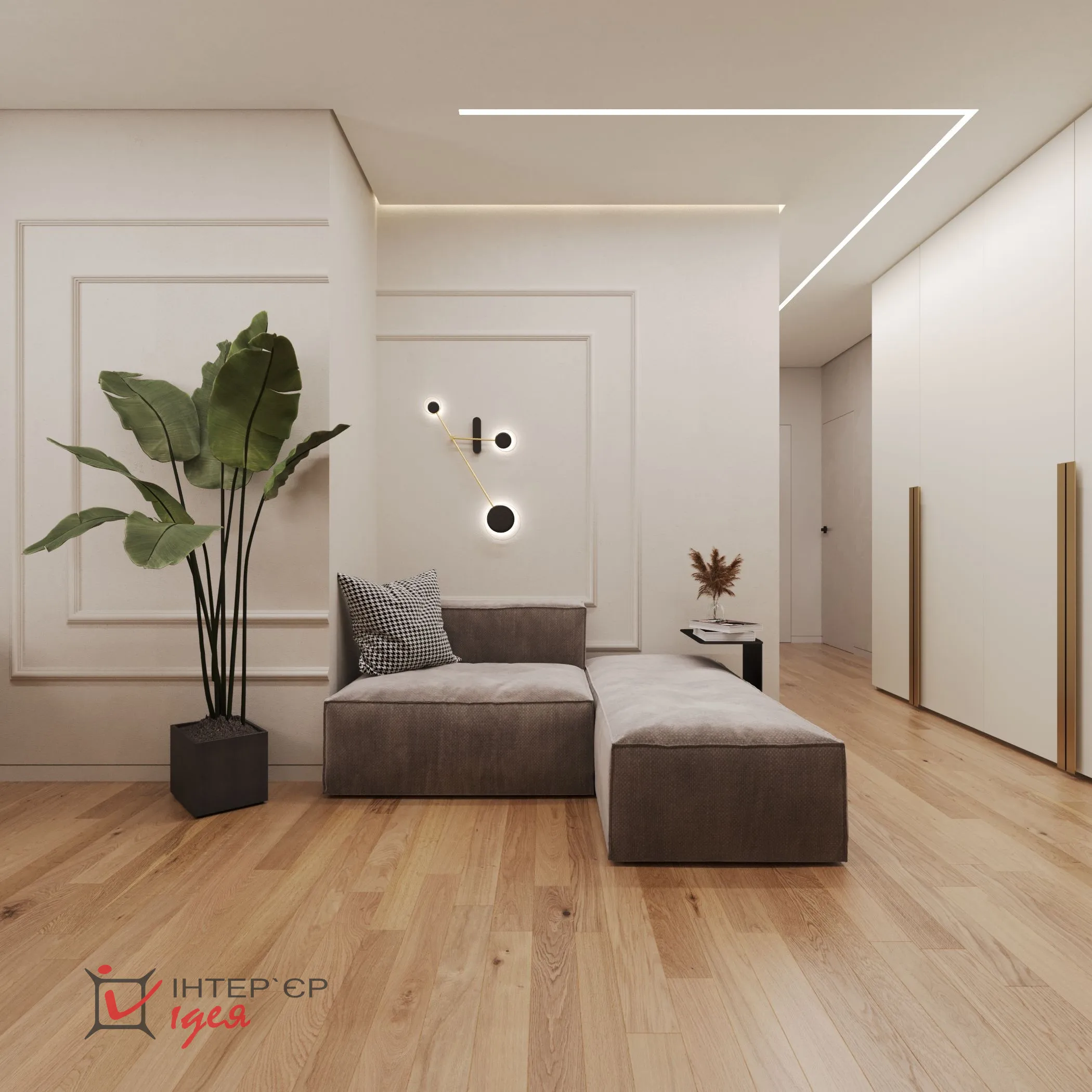 Декоративні елементи, такі як подушки, картини або вази, створюють єдиний гармонійний образ. До цього додано декоративне освітлення у вигляді ЛЕД стрічок або бра з м'яким світлом, яке створить атмосферу затишку та комфорту.