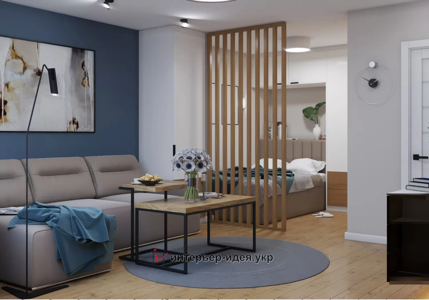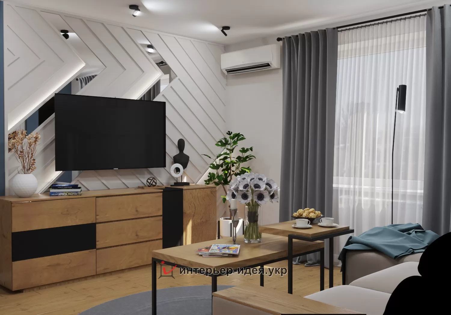 Також цікавим елементом в інтер'єрі є годинник, стильний і майже не помітний на стіні.