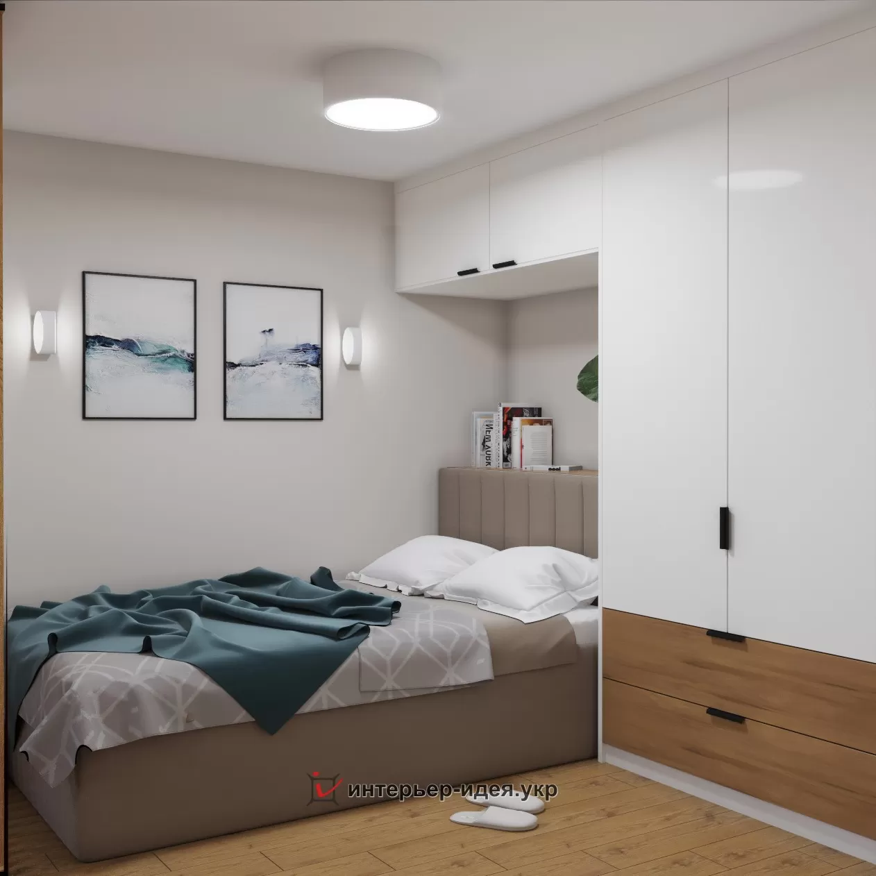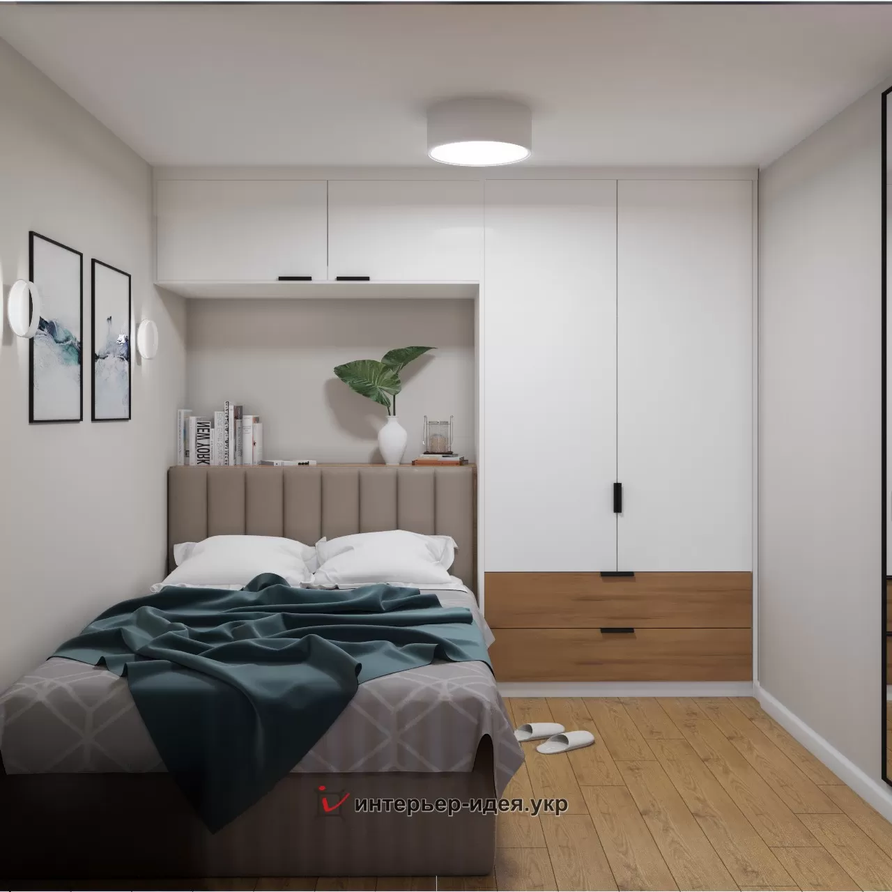 У зоні спальні розташоване ліжко з м’яким узголів'ям (матрац розміром 1200х1900).